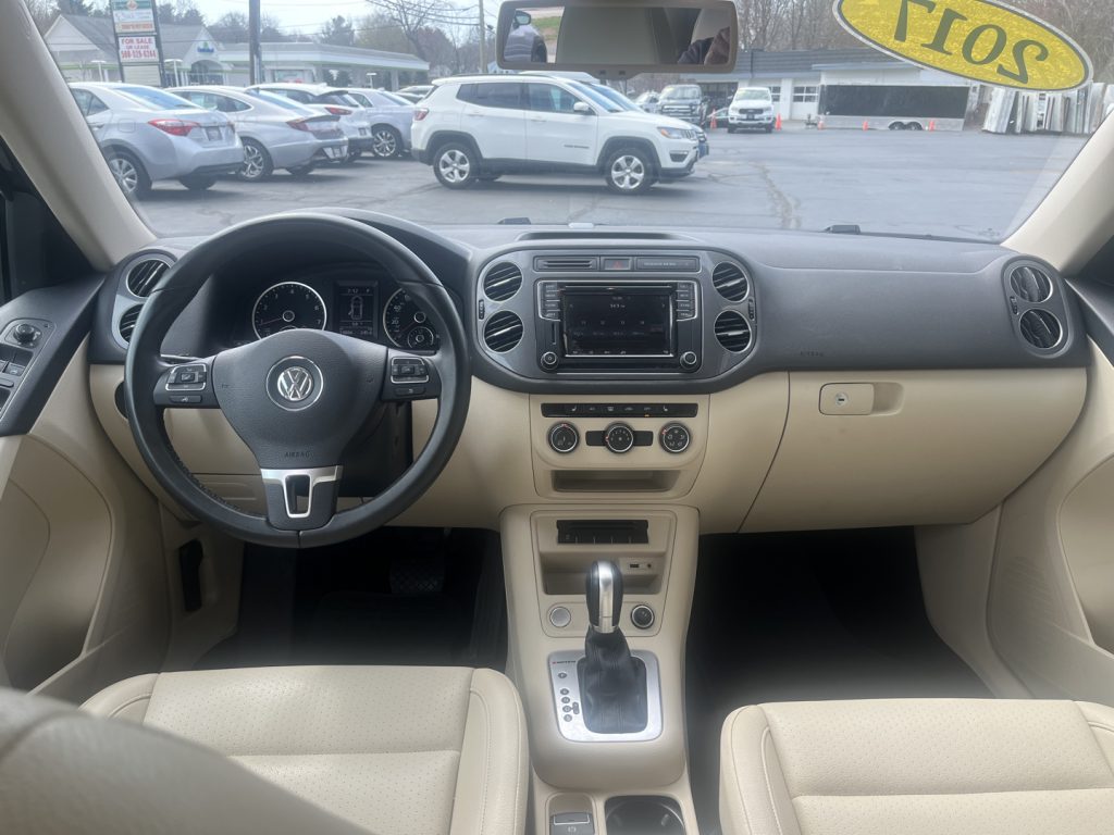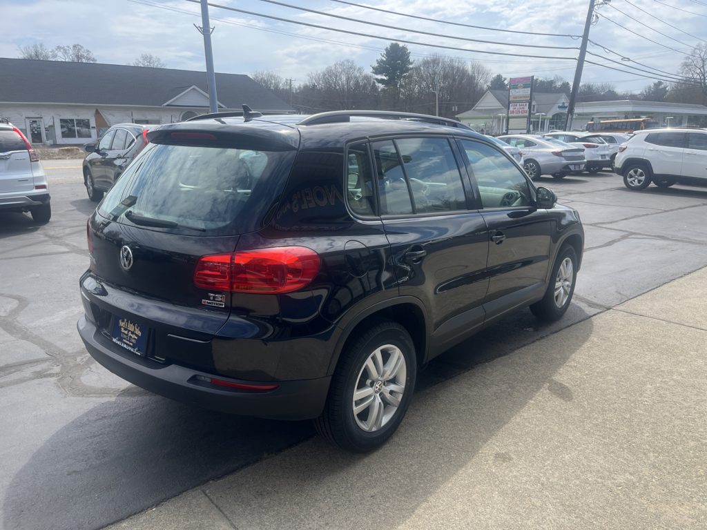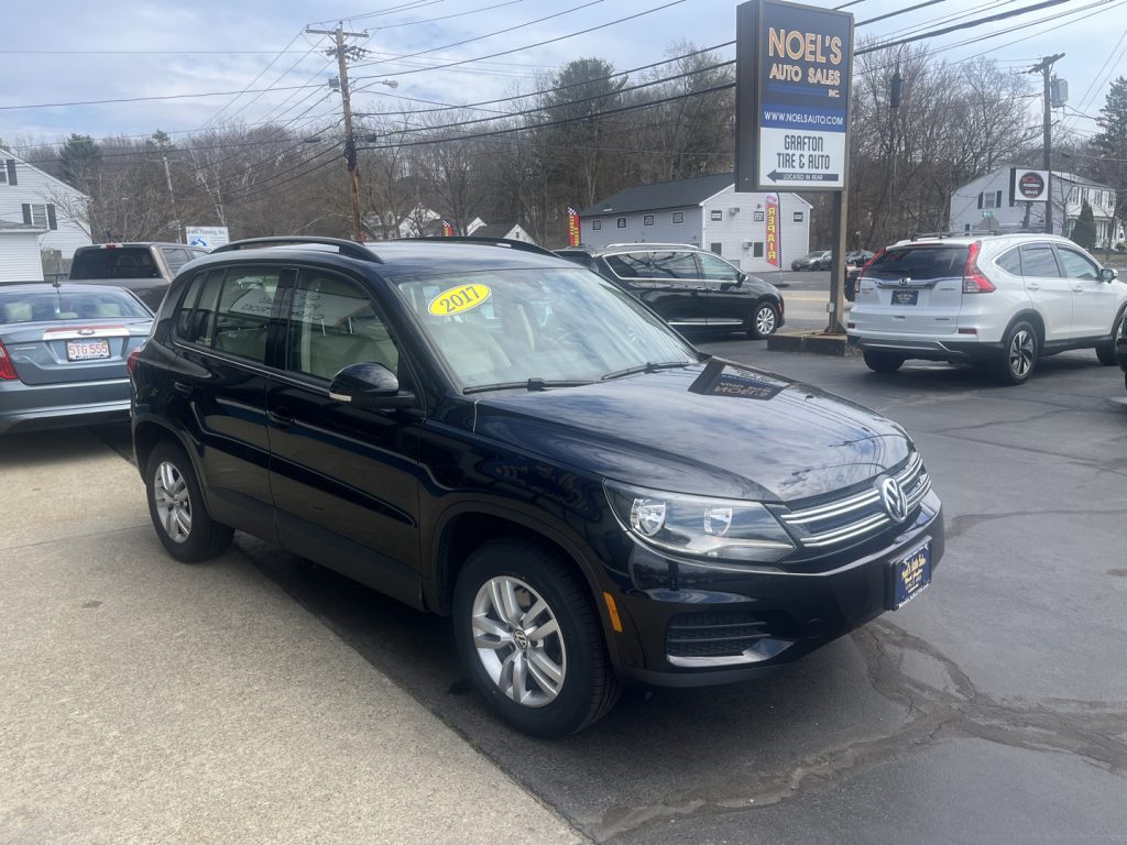 Experience exceptional value at NOELS AUTO SALES INC with this One Owner low miliage... 2017 Volkswagen Tiguan S. Dressed in sleek black and driven only 74,806 miles, it features a spirited 2L 4-cylinder turbo engine paired with a 6-speed automatic transmission. Enjoy comfort and convenience with heated seats, Bluetooth, backup camera, keyless ignition, and SiriusXM radio. Safety shines through its stability and traction control systems. Call 508-839-1288 today to schedule your test drive and elevate your driving experience.